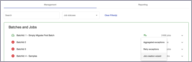 - Filtering the jobs will only change the administrator's view of the jobs when they create them; Simply Migrate will attempt to create jobs for ALL ticked items, not just those visible in the filter.