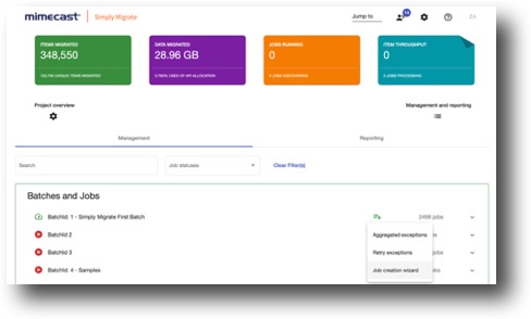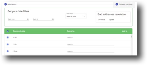 - Jobs will be created and a tick will be shown in the Job Status, next to all the source files that have been selected. The Barracuda data migration is complete.