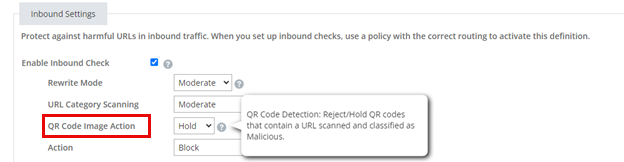 When a phishing attack scenario is identified, Mimecast scans the URL associated with the QR code and makes a determination in line with your URL Protect Policy and Definition settings, rejecting or holding the message if found to be a threat. Mimecast does not remove/strip the QR Code from the message.