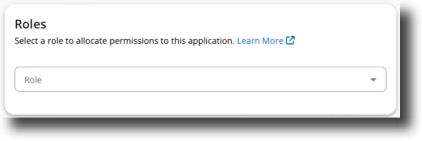 - Roles - Select a Role to assign permissions to your application. You should select the minimum level of permissions required for the App to function.