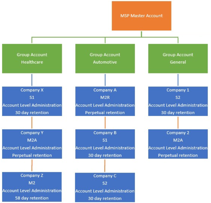 Accounts can be moved around to create a hierarchy. Customer accounts can be added or removed from the Federated Account Administration structure. The ability is retained by Mimecast's service delivery team.