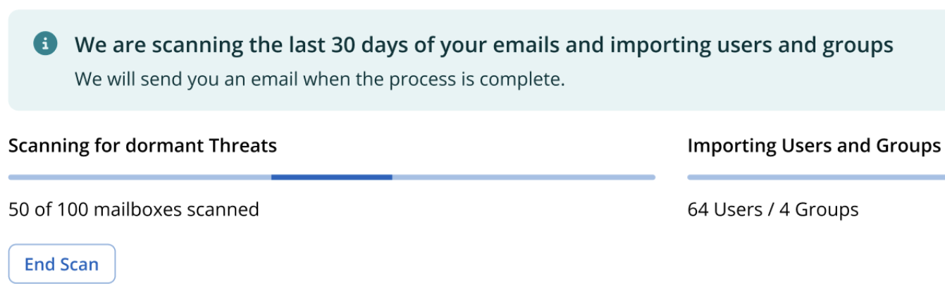 During your initial sign-up and implementation, Mimecast Email Security Cloud Integrated will perform a Threat Scan on all emails delivered to your environment in the last 30 days.