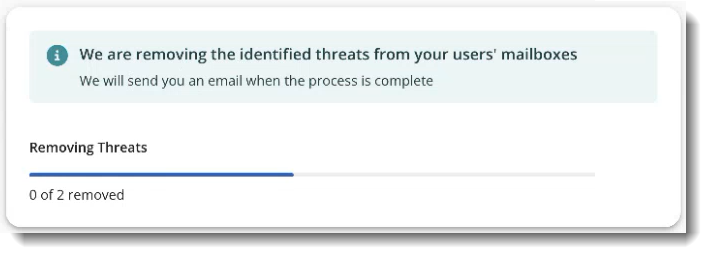 After you confirm that you wish to remove any identified threats, Mimecast Email Security Cloud Integrated will display the progress on the Home screen.