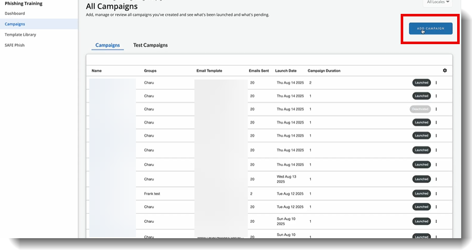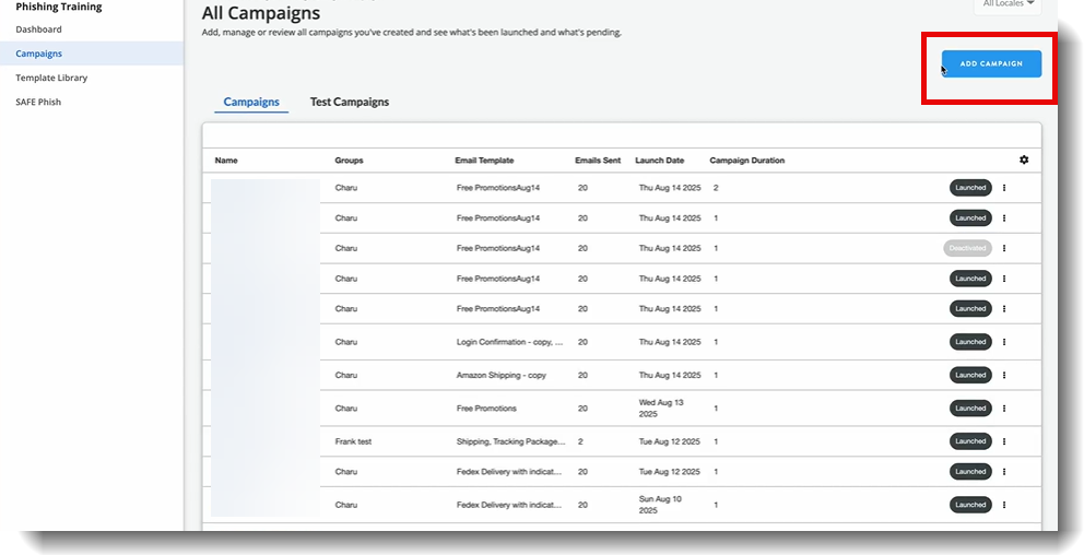 - Navigate to Phishing Training | Campaigns.