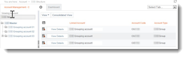 - Click on the Consolidated View button for a full list of the group and mail processing accounts linked to the master account.