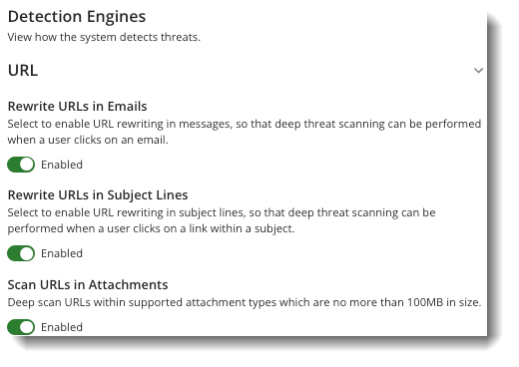| Scan URLs in Attachments | This will extend the same URL protection to URLs within attachments. |