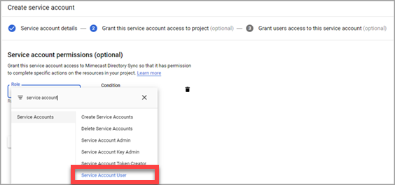 Service Account Name Specify a name to identify the service account (e.g., Mimecast Directory Synchronization).