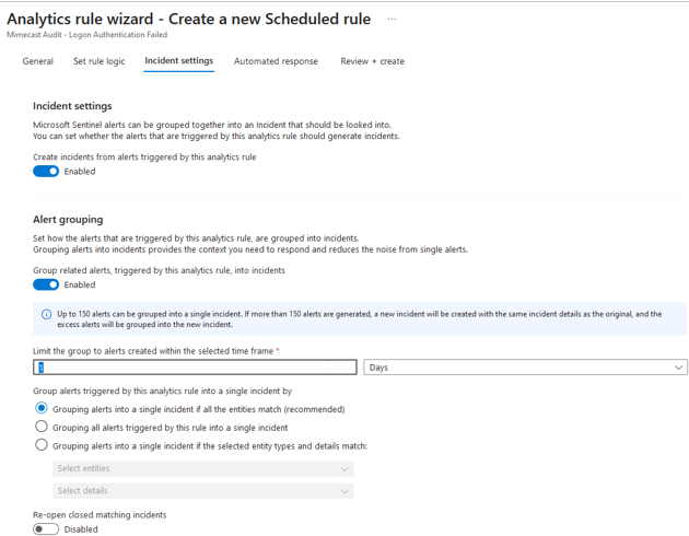 - Click on Incident Settings and set Limit the group to alerts created within the selected time frame to 1 day.