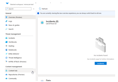 - Enter the Azure Sentinel workspace, and locate the installed Mimecast application in the content hub.