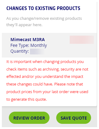 Any changes to existing products will appear in the Changes to Existing Products box, which will reflect the modifications made.