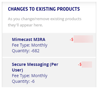 In the case of this example, Mimecast has removed the quantity of 682 seats and has replaced it with the new quantity of 700.