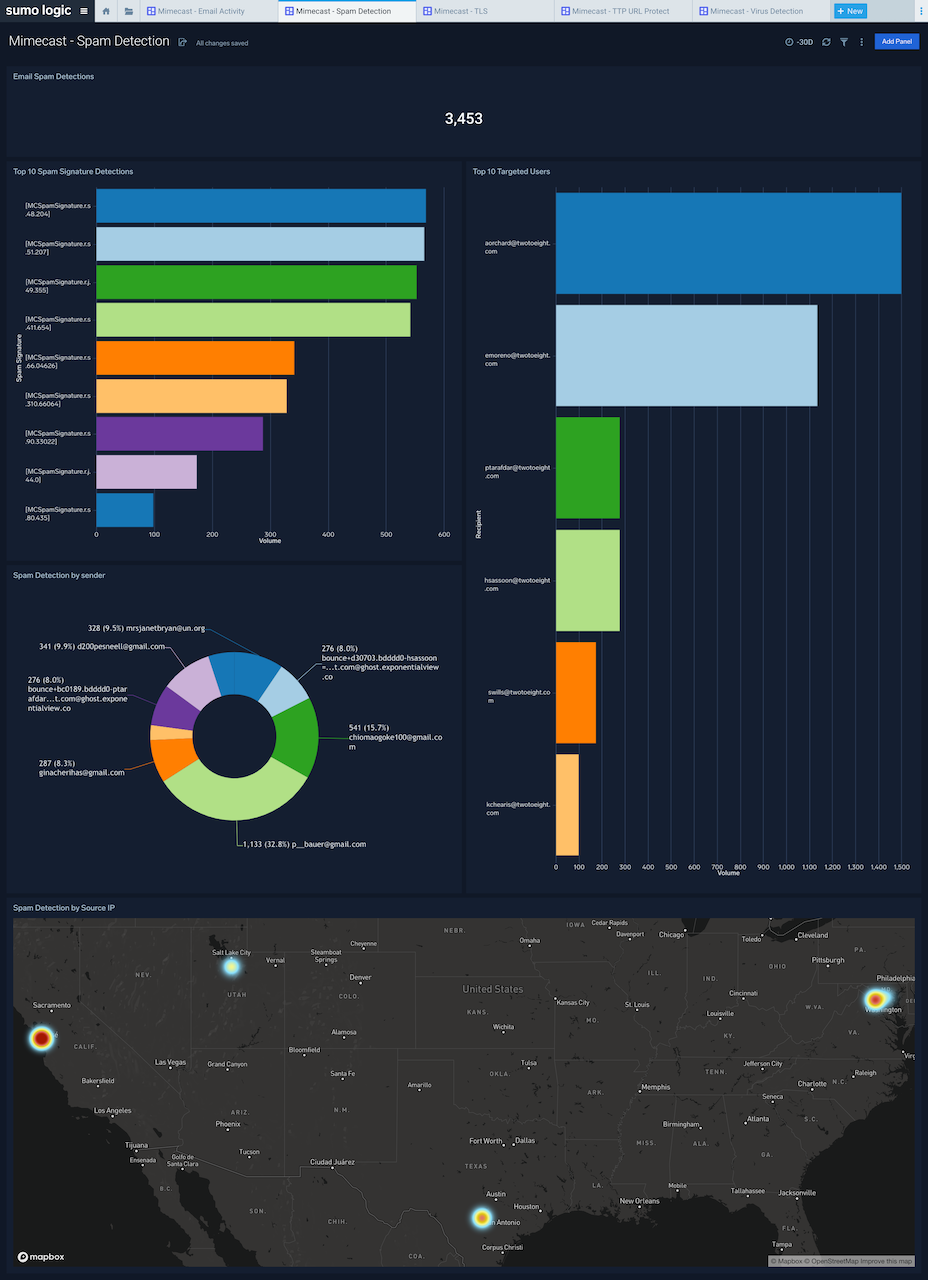 | Mimecast - Spam Detection | Overview of spam detection events |