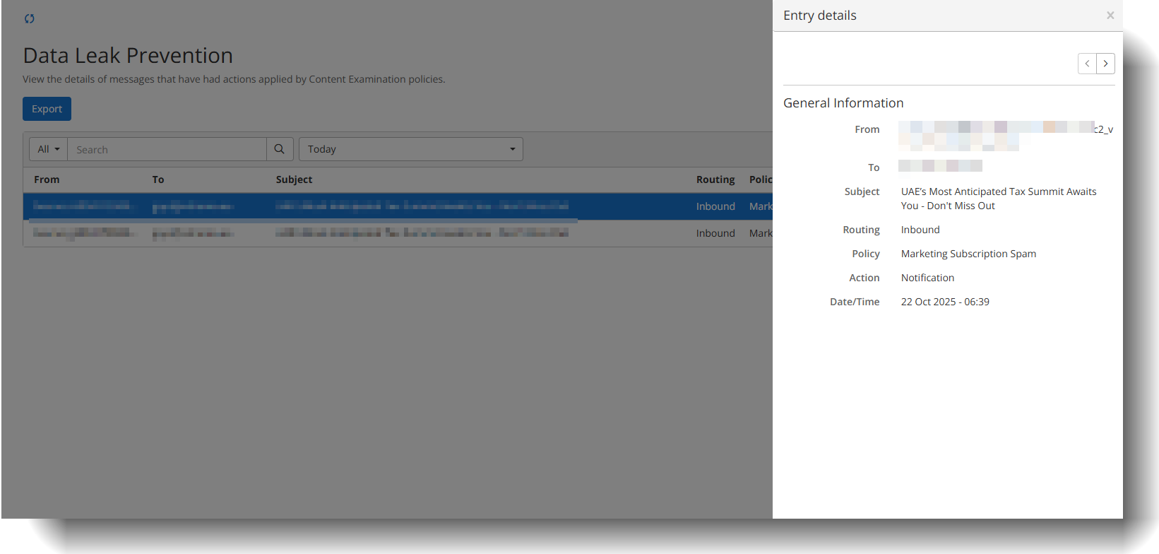 This article describes how to monitor data leak prevention by accessing log files. This applies to Administrators responsible for understanding why content examination policies have been triggered.