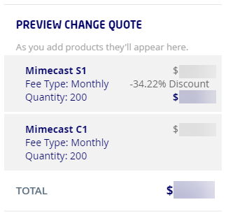 Under the Preview Change Quote box, we can now see the new quantity for S1 and C1 products at 200 seats.