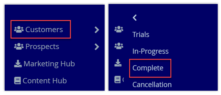This will bring up a list of your Current Customers. You’ll be able to find the customer that you wish to initiate an Upsell / Downsell order for by either searching via the search bar at the top or by clicking on the first letter of the customer's name. Once you have found your customer, click on the Customer name to bring up their current information.