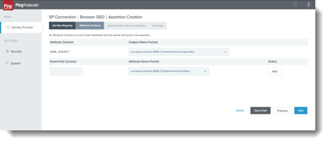 - Browser SSO > Assertion Creation > Attribute Contract: