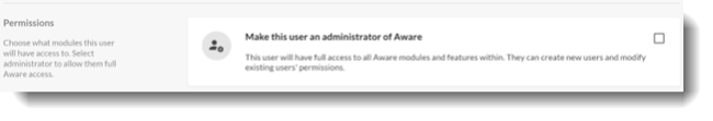 - Select the module to which this user will have access. Choose Administrator to grant them full access to Aware.