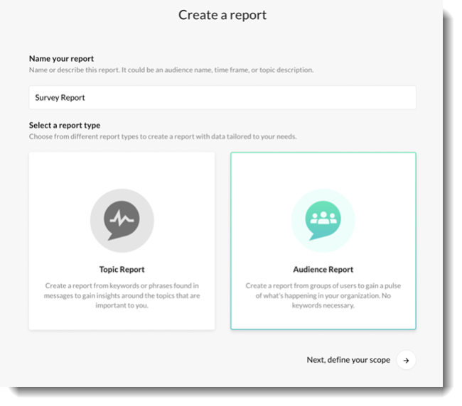 - Select Content Platform from the Audience Type. This allows you to run a report on the entire Survey Platform, such as Qualtrics or Glint.