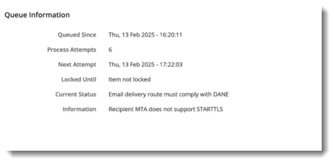 The DNS records for the recipient domain must be correctly configured for Mimecast to proceed with an SMTP DANE delivery; however, these configurations are beyond our control.