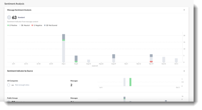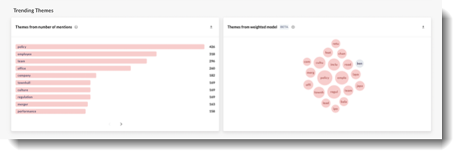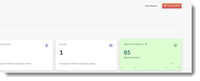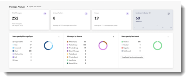 Leverage historical data to run reports by keywords and specific audiences to gain a better understanding of segments of employees and the people or topics that make up the workforce based on conversation Sentiment and Health Metrics.