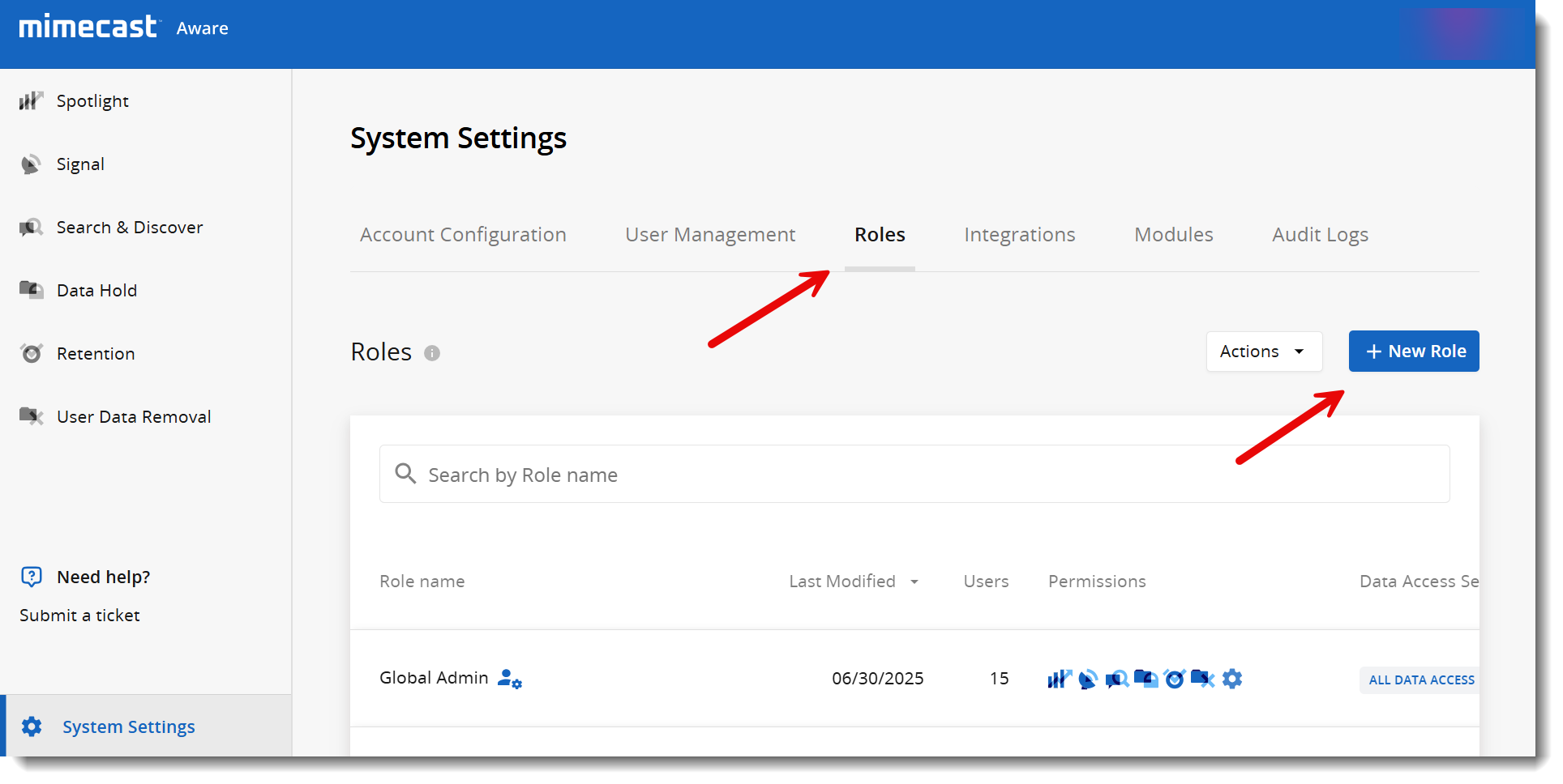 To create a new role, navigate to System Settings > Roles > +New Role.