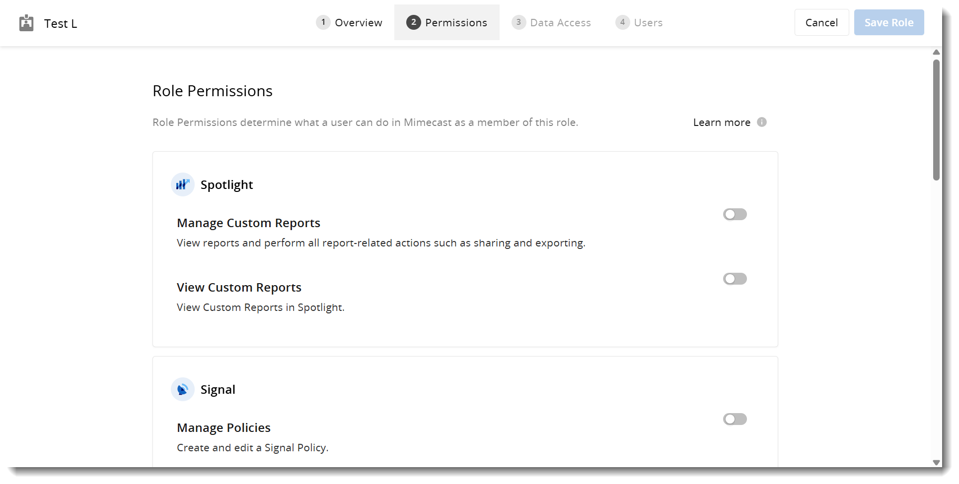 - Select which Signal, Search, and Discover permissions you want to assign to the role.
