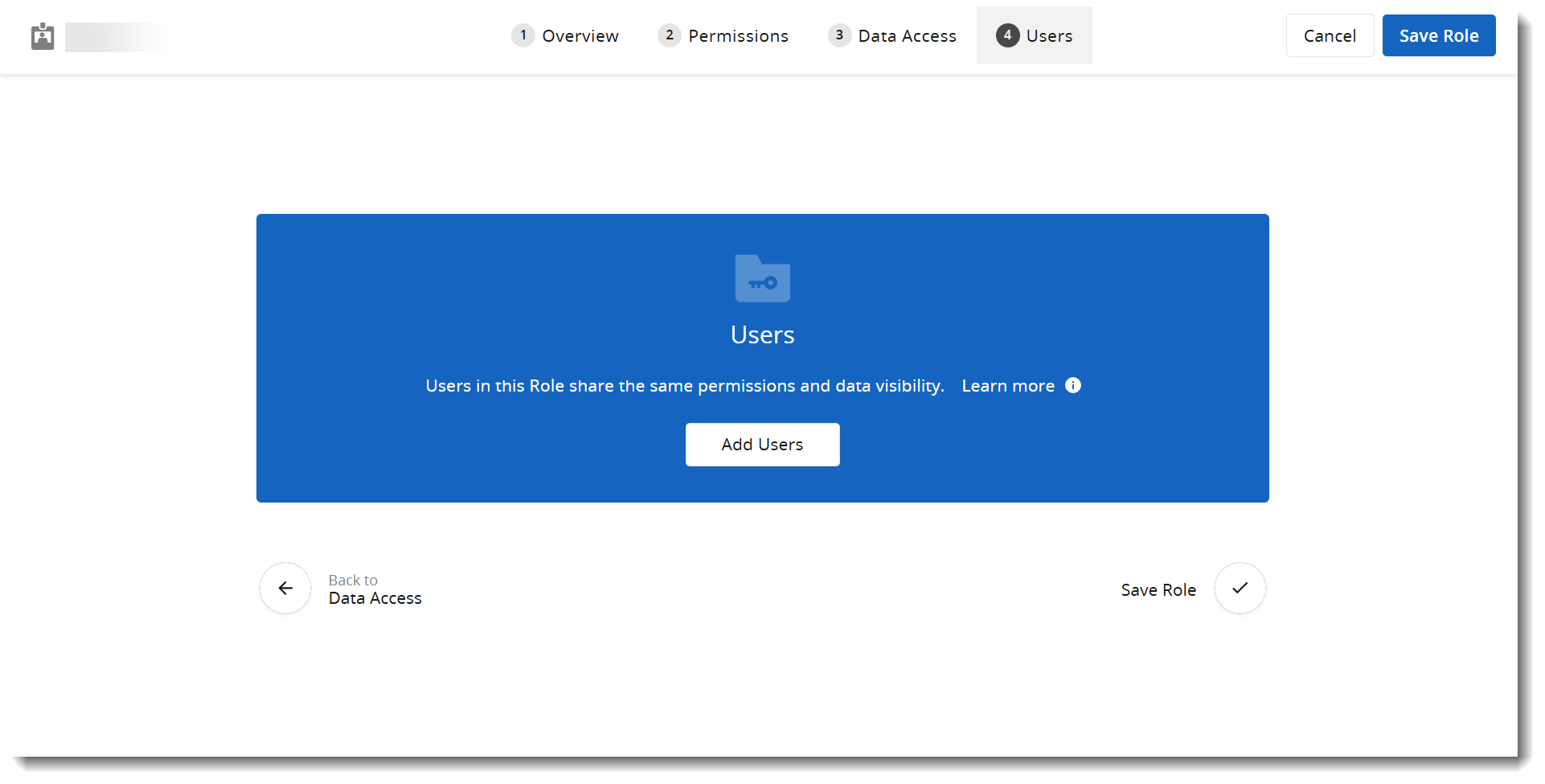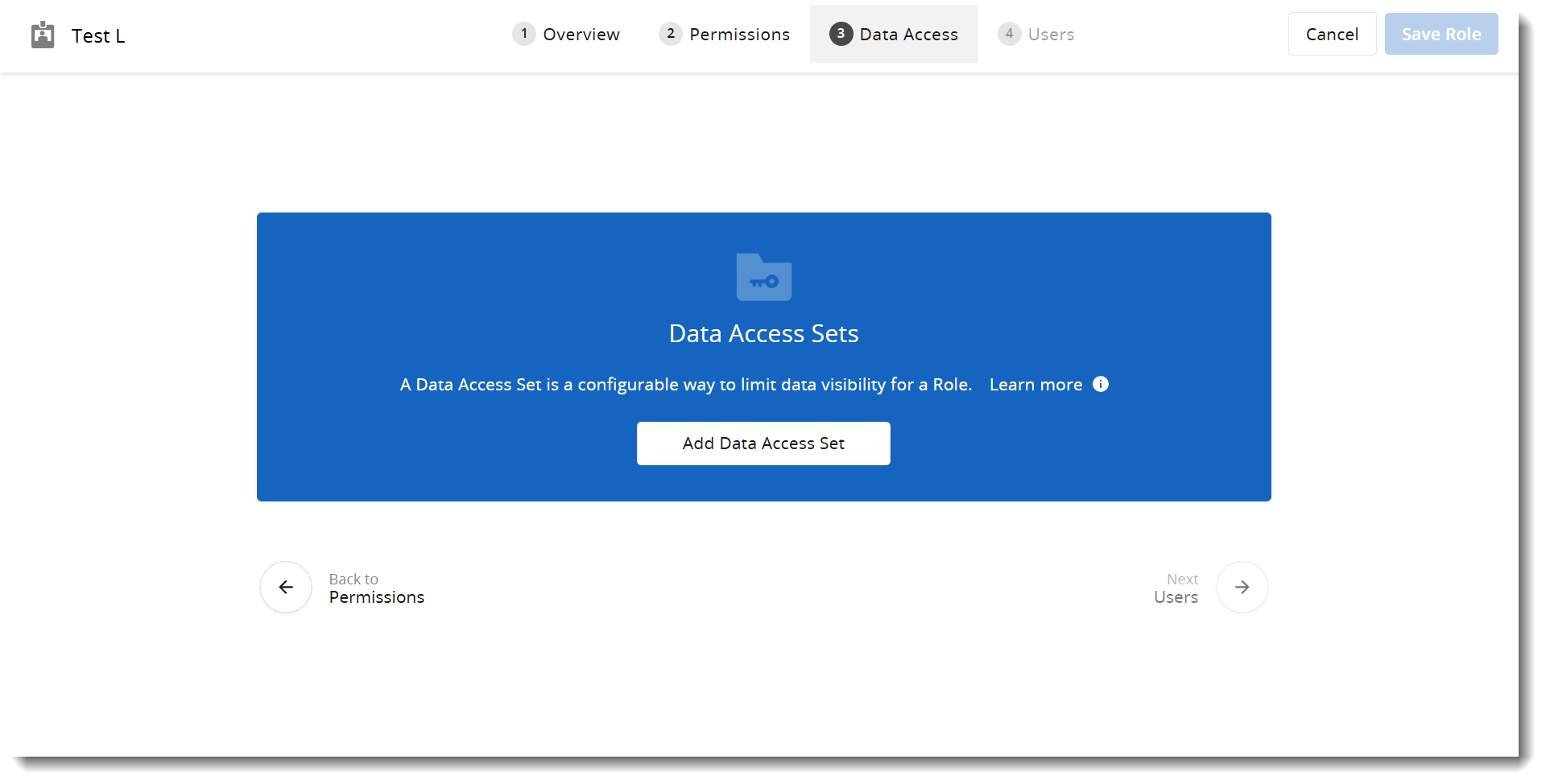 - When finished adding Data Access Sets to the role, click Users.