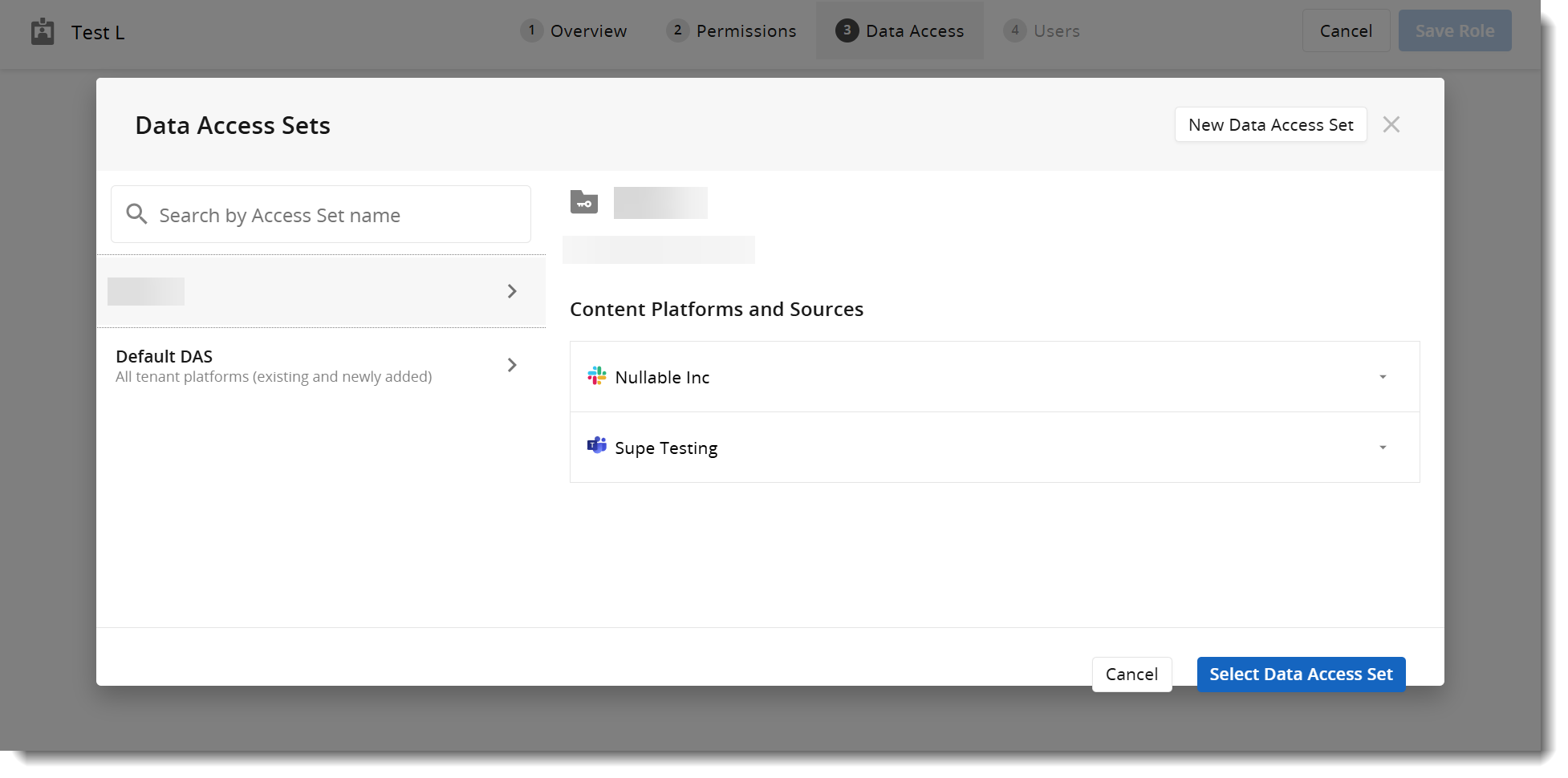 - You can also select the New Data Access Set to create a new Data Access Set.