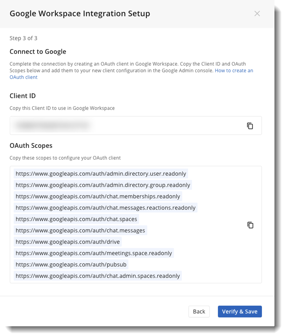 You will be prompted to create a GWS Client in your Google Workspace Administration Console.