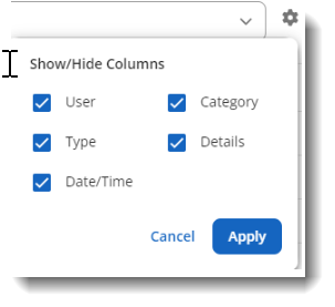 - In the Filter-by dropdown, select Account Logs and click Apply.